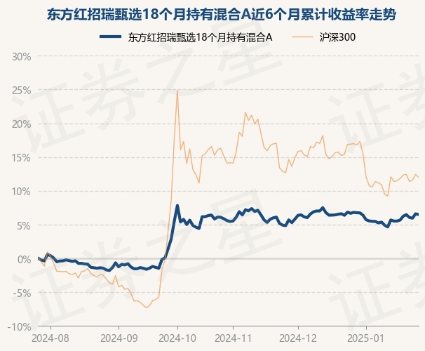 本站消息,1月27日,东方红招瑞甄选18个月持有混合A最新单位净值为1.0345元,累计净值为1.0345元,较前一交易日下跌0.12%。历史数据显示该基金近1个月下跌0.26%,近3个月上涨0.35%,近6个月上涨6.47%,近1年上涨9.9%。该基金近6个月的累计收益率走势如下图: