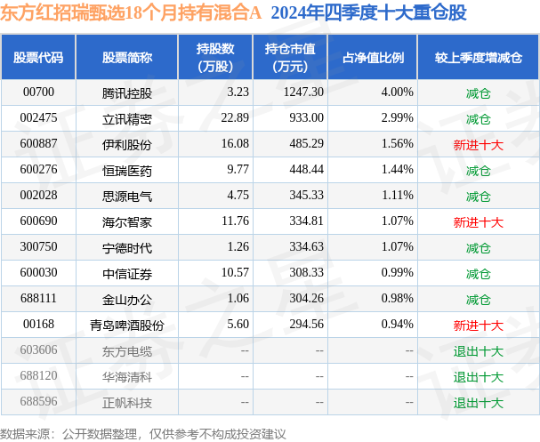 东方红招瑞甄选18个月持有混合A为混合型-偏债基金,根据最新一期基金季报显示,该基金资产配置:股票占净值比25.37%,债券占净值比107.66%,现金占净值比3.36%。基金十大重仓股如下: